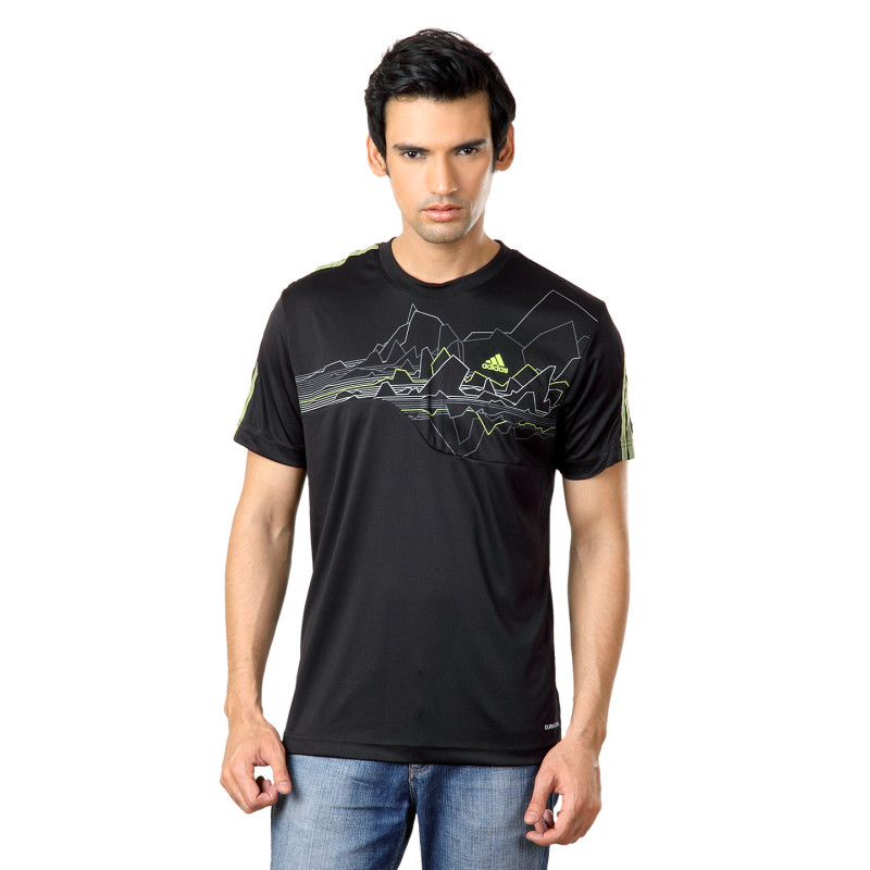 ADIDAS Men Black T-shirt. Color: Black. Season: Summer.